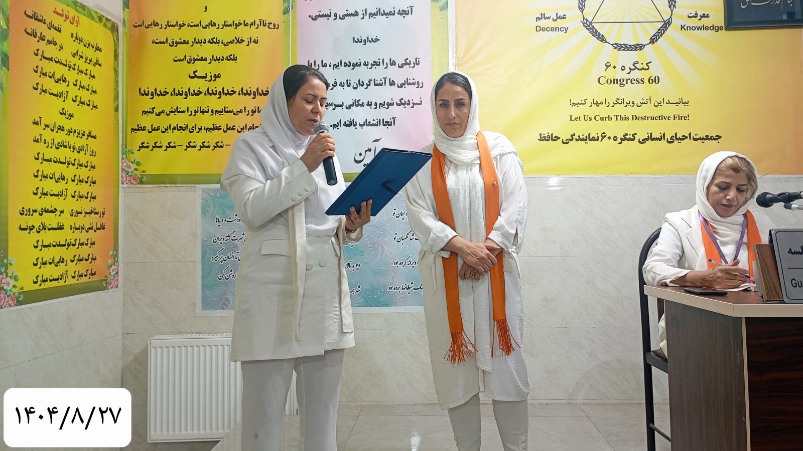 هر فردی که در این مکان خدمت میکند، کاملاً دلی است و هیچ کسی به اجبار در این مکان نیامده و هر خدمتی را که با عشق انجام میدهیم؛ نتیجه، سالها خدمت و تلاش در مسیر کنگره میشود. روزی همسفر خدیجه از دنیای تاریکیها آمدند و با دشواریهای بسیار این مسیر را پیدا کردند تا حس او خوب شود و با ادامه این مسیر خودش را در این جایگاه دید، مسافرش به درمان رسید. آن چیزی که مهم است ساختن و ساخته شدن است، کافی است انسان ادامه بدهد. بنده از همسفر خدیجه بسیار انرژی میگرفتم، بسیار صبور و مهربان و با عشق این مسیر را نیز طی کردند امیدوارم در جمع ما باشند و بتوانیم از او بهره لازم را بگیریم.