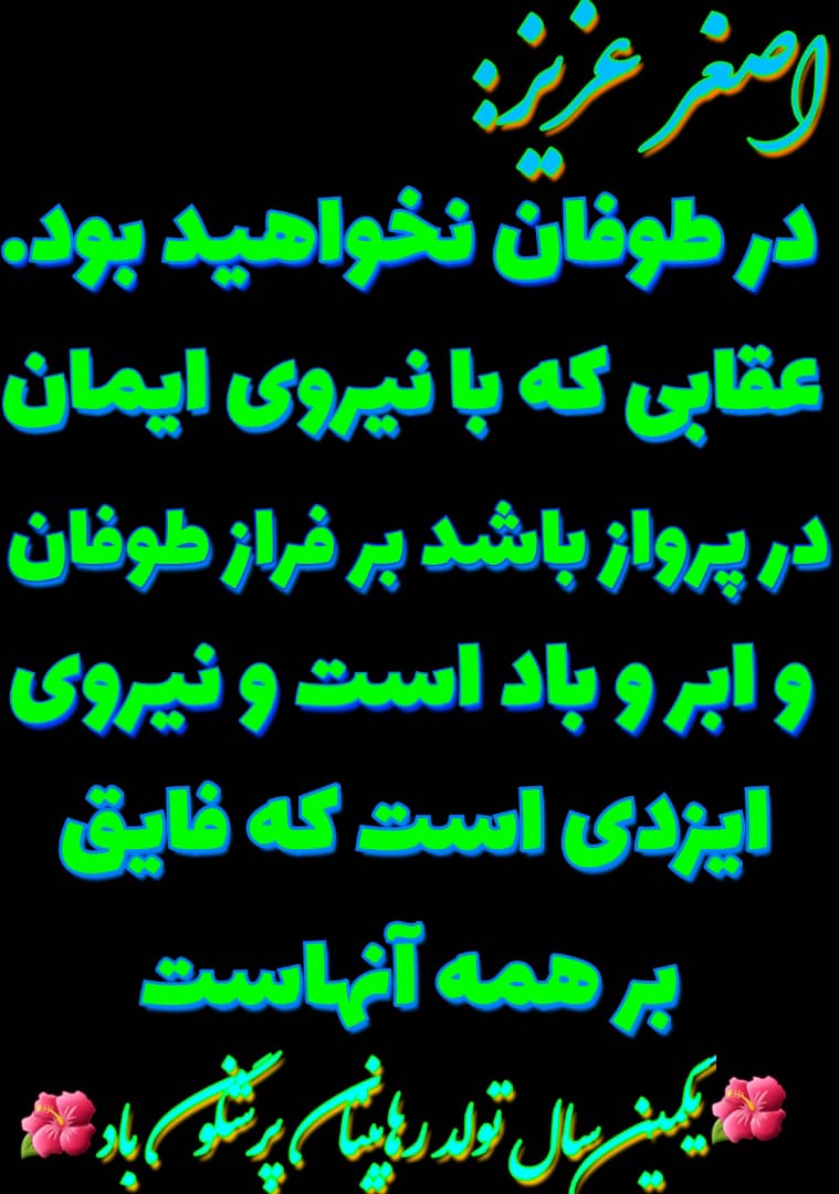 هنگامی که میخواستم برای تولد ایشان پیامی از داخل کتاب ۶۰ درجه انتخاب نمایم، بهترین و درستترین پیام برای ایشان به نمایش درآمد. انشاالله که این پیام را به فال نیک بگیرند و در ادامه نیز خدمتگزار خوبی باشند.