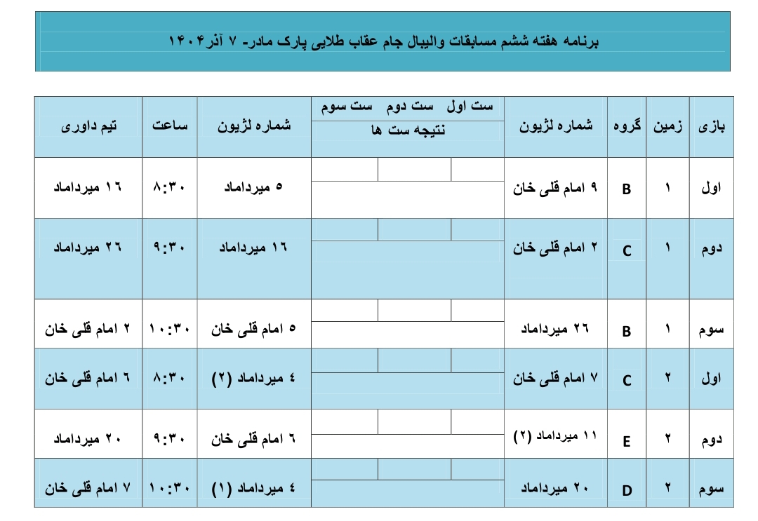 برنامه مسابقات والیبال جام عقاب های طلایی مورخ 7 آذر ماه 1404