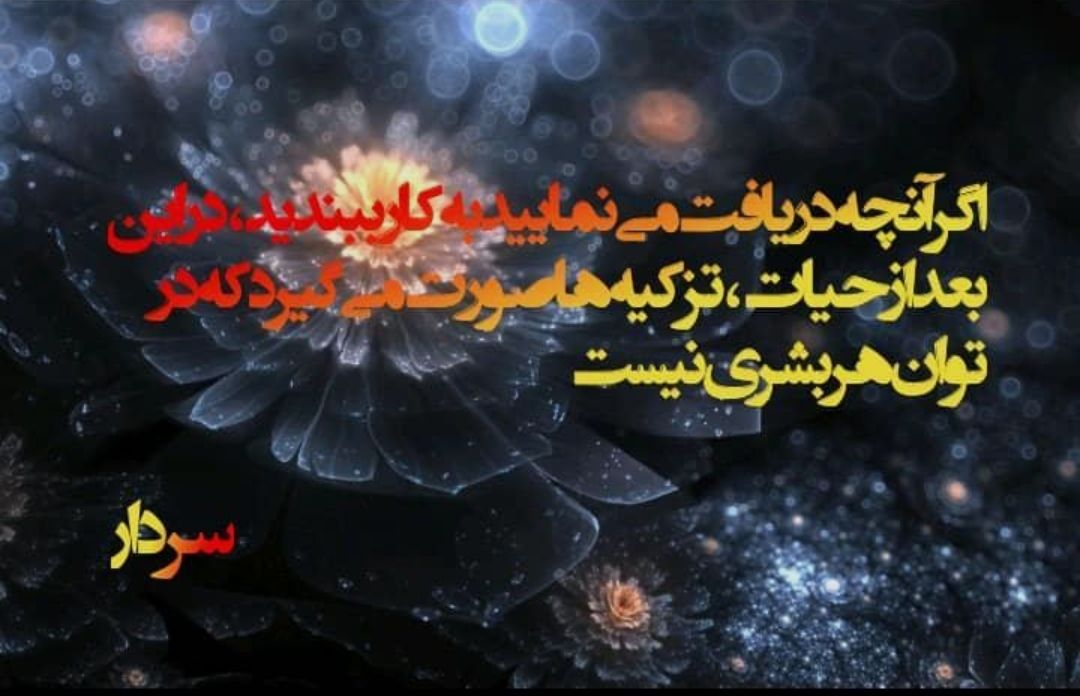 باید بدانیم که حقیقت از طریق شعور وآگاهی پیدا میشود وپیام الهی رابرای انسان به ارمغان میآورد وبزودی در انسان احساسی بوجود می آید وبی وقفه روحش خواستار اوج گیری است ذهن هرگز بیمار نیست اکر هدف زندگی انسان برپایه خود خواهی بنا شود تمام احساسات حیوانی به جوش وخروش می افتد همانطور که رگها سیستم جریان خون را برعهده دارند تنها کافی است که ثابت شود سیستمی دقیق تری وجود دارد که نیروهای حیاتی را به یک منبع الهی متصل میکند.