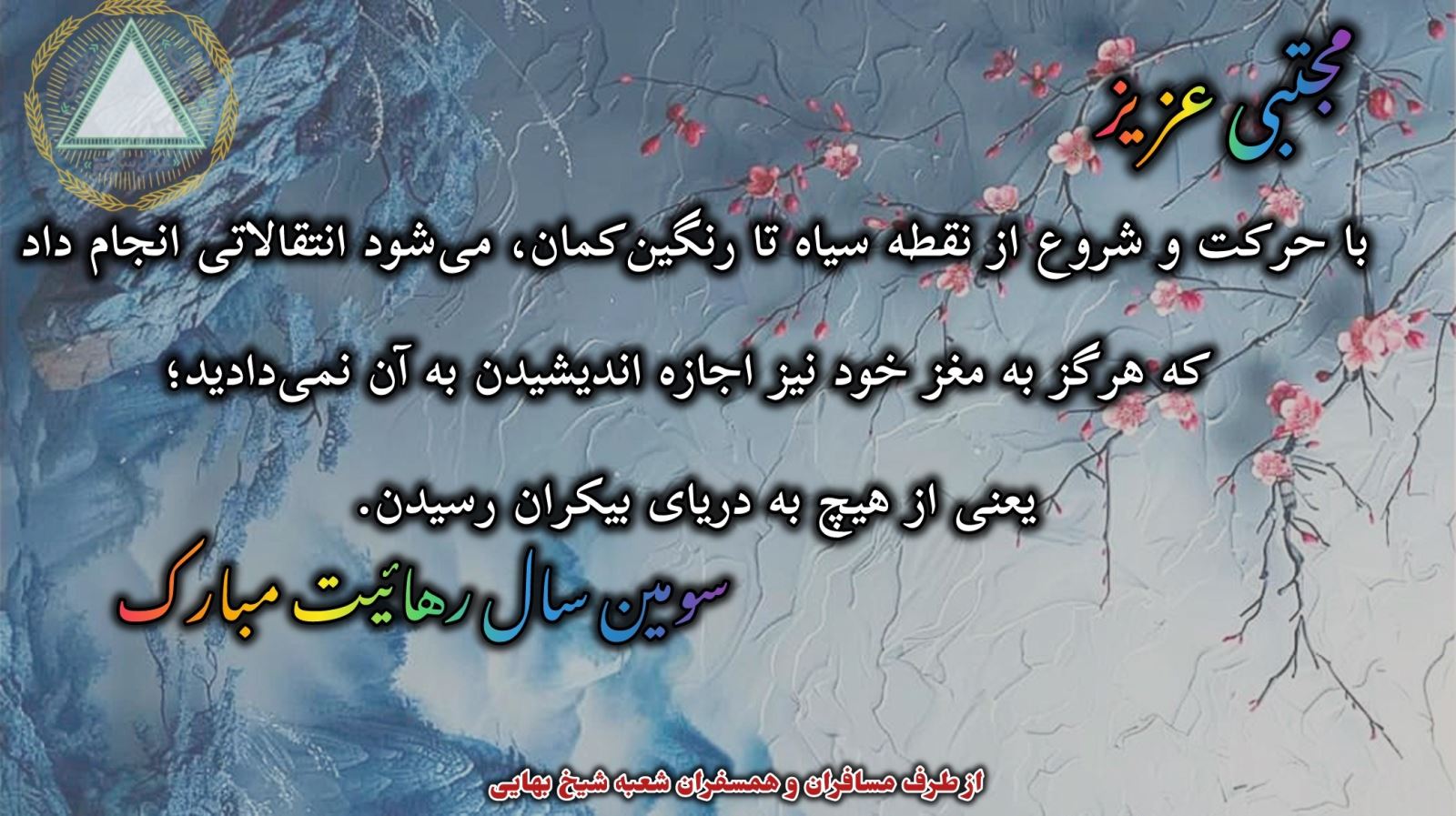 هر وقت آن سیم اتصال ما به کنگره۶۰ برقرار شود و دلمان از نام کنگره۶۰ و جناب آقای مهندس دژاکام بلرزد و اشتیاق برای آمدن داشته باشیم، آنگاه به آن وضعیت نسبی که باید برسیم، نزدیک شدهایم و این خود مقدمه رسیدن به سایر منازل است. این رهایی را به همه اعضای نمایندگی تبریک میگویم. برخی ویژگیهای آقا مجتبی گفتنی نیست و به تدریج ظاهر خواهد شد. شالی زرد و ترمهای زیبایی در راه است و انشاءالله در دو تا سه ماه آینده عزیزی به دنیا خواهد آمد. مهمترین دستاورد آقا مجتبی آرامش درونی است که مرهون پرتوهای کنگره۶۰ است.