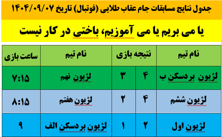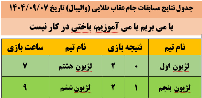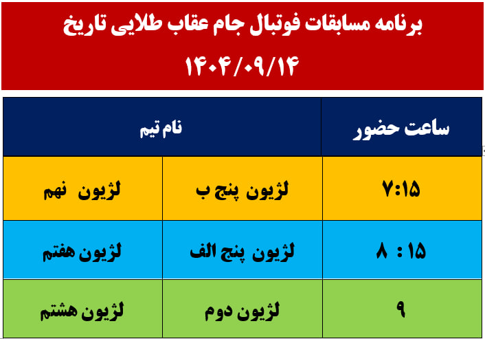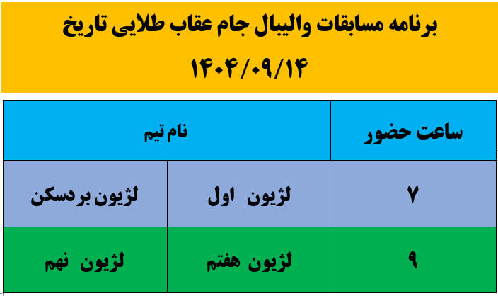 🟣 رقابت های هفته اینده مورخه ۱۴۰۴/۰۹/14 شرح زیر اعلام می گردد: