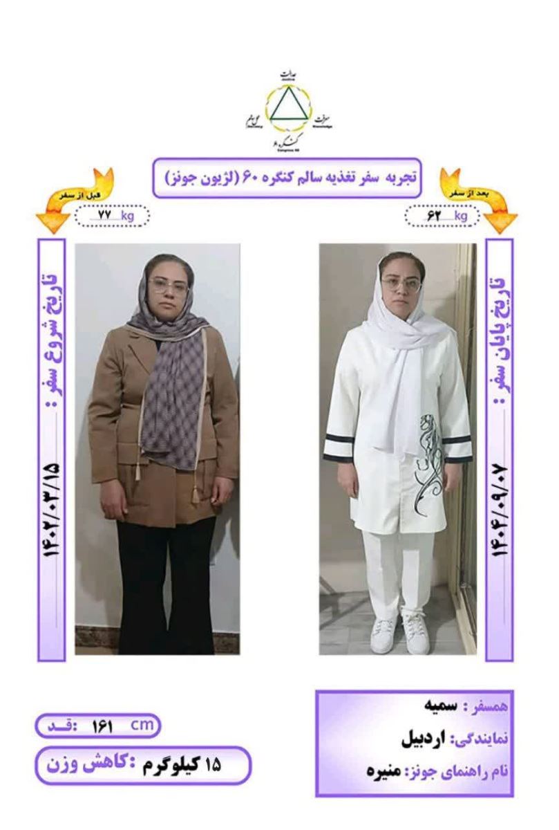 در روز جمعه ۷ آذر ماه ۱۴۰۴، همسفر سمیه رهجو راهنما همسفر منیره از نمایندگی اردبیل با قد ۱۶۱ و وزن اولیه ۷۷ کیلوگرم به مدت ۱۷ ماه و ۲۲ روز به روش Dezhakam سفر کردند؛ ۱۵ کیلو کاهش وزن داشتند و به وزن ۶۲ کیلوگرم رسیدند و با دستان پر مهر آقای مهندس آزاد و رها شدند.