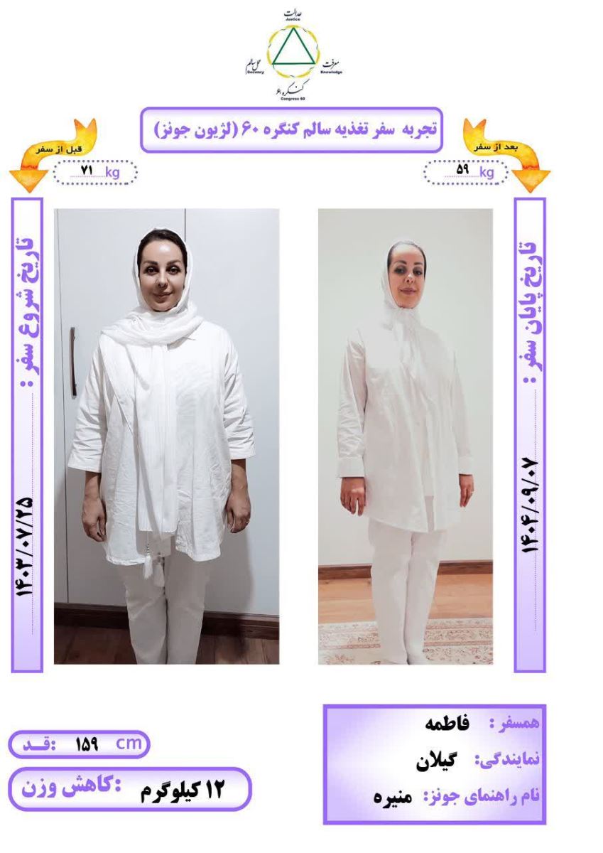 در روز جمعه ۷ آذر ماه ۱۴۰۴، همسفر فاطمه رهجو راهنما همسفر منیره از نمایندگی گیلان با قد ۱۵۹ و وزن اولیه ۷۱ کیلوگرم به مدت ۱۳ ماه و ۱۲ روز به روش Dezhakam سفر کردند؛ ۱۲ کیلو کاهش وزن داشتند و به وزن ۵۹ کیلوگرم رسیدند و با دستان پر مهر آقای مهندس آزاد و رها شدند.