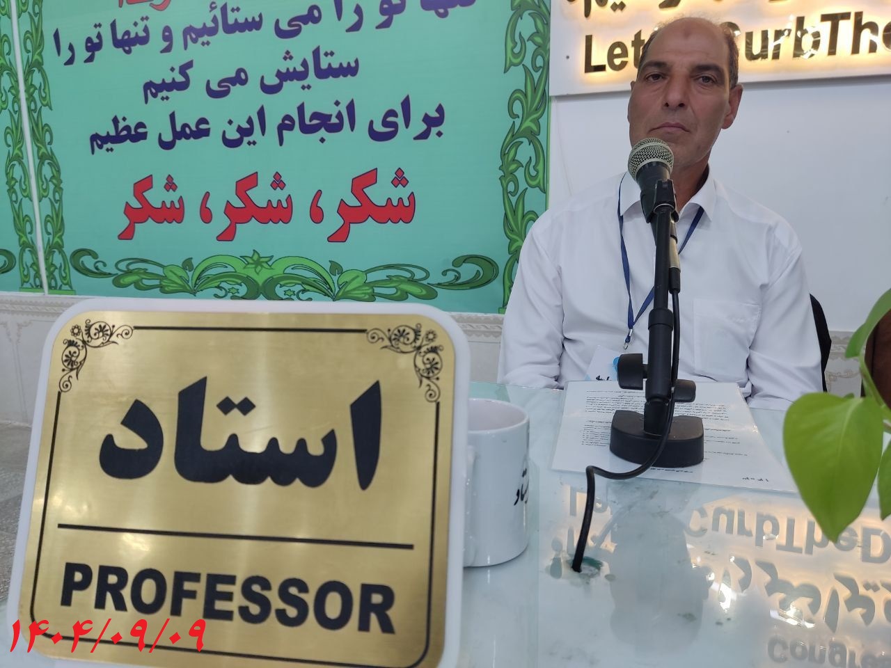 با سپاس از خداوند بزرگ که یکبار دیگر به من اجازه داد تا این جایگاه را تجربه کنم. خدا را شکرگزارم بابت این نعمت بزرگ. همچنین سپاس فراوان دارم از آقای مهندس که با محبت درِ این مکان مقدس را به روی ما گشود تا بتوانیم بیاییم، آموزش بگیریم و به حال خوش برسیم.از تمام راهنمایان، بهویژه راهنمای محترمم که با محبت و صبر یازده ماه مرا تحمل کرد و تا این حال خوش همراه من بود، سپاسگزارم. همچنین از عزیزان خدمتگزار، از مرزبانان محترم، مسئولین صوت و تصویر و همه بزرگوارانی که خدمت میکنند قدردانی میکنم.از برادر عزیزم محمود هم تشکر ویژه دارم؛ چون راه را ابتدا او به من نشان داد. او بود که مسیر کنگره را به من معرفی کرد تا این در به روی من باز شود. بابت محبت و همراهیاش بسیار ممنونم و آرزو میکنم آرامش و آسایش همیشه در زندگیاش جاری باشد.خدا را شکر که امروز در جمع شما عزیزان هستم. خیلی خوشحالم؛ البته کمی استرس دارم، اما بودن در کنار شما افتخار بزرگی است و تجربهکردن این جایگاه برایم ارزشمند است.