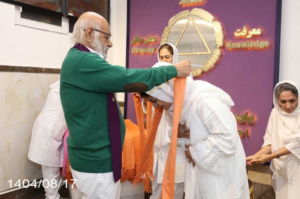 «همسفر عاطفه و همسفر آمنه» همسفران نمایندگی رودهن، پس از بستن پیمان، شال خوشرنگ راهنمایی را از دستان پرمهر آقای مهندس دریافت کردند. ضمن عرض تبریک و شادباش، برای این عزیزان آرزوی موفقیت داریم. انشاالله در مسیر خدمت سربلند باشند.