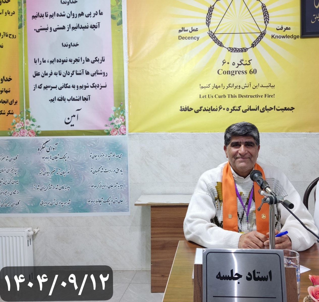 چهارمین جلسه از دوره سیزدهم از سری کارگاههای آموزشی خصوصی کنگره ۶۰ ویژه مسافران نمایندگی حافظ شعبه شهریار با نگهبانی مسافر علی اصغر استادی راهنما محترم مسافر علی و دبیری مسافر مصطفی با دستور جلسه «وادی دهم:صفت گذشته در انسان صادق نیست؛چون جاری است.» چهارشنبه 12 آذر ۱۴۰۴ راس ساعت ۱۷ آغاز به کار نمود.