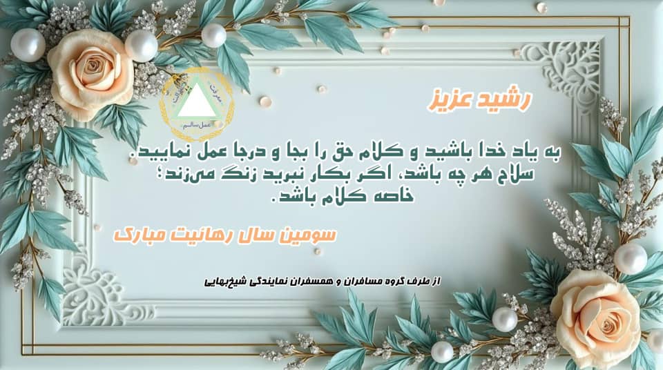 سومین سالروز رهایی را به مسافر رشید و راهنمای محترمشان آقای علی جیهانی و همچنین به همسفرانشان آقا نوید و نهال خانم عزیز تبریک عرض میکنم. از راهنمای سفر اول همسفر زهره، خانم بهناز گرامی و راهنمای قبل سفر دوم ایشان خانم الهه عزیز قدردانی میکنم و برایشان بهترینها را آرزو میکنم. همچنین خدمت خود همسفر زهره تبریک عرض میکنم؛ در ادامه امیدوارم همچنان در جمع ماندگاران و خدمتگزاران واقعی کنگره۶۰ قرار بگیرند.