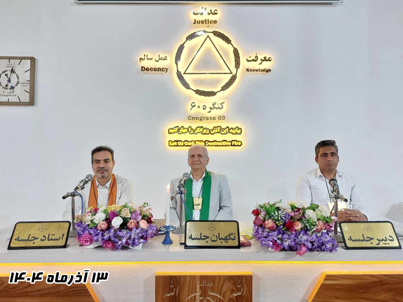 جلسه دهم از دوره سی و نهم سری کارگاههای آموزشی، عمومی کنگره۶۰ نمایندگی شیخبهایی اصفهان با استادی راهنمای محترم مسافر علی، نگهبانی مسافر مسعود و دبیری مسافر مجید با دستور جلسه «وادی دهم (صفت گذشته در انسان صادق نیست؛ چون جاری است و سومین سال رهایی مسافر رشید» در روز پنجشنبه ۱۳ آذر ماه ۱۴۰۴ ساعت ۱۶:۰۰ آغاز به کار نمود.