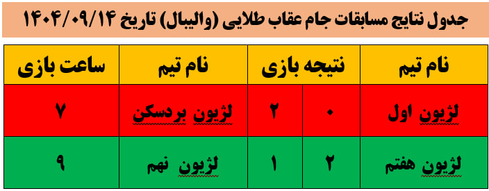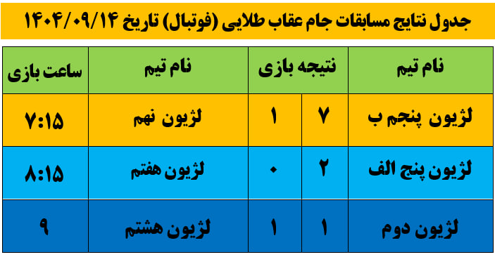 ⚽️ اعلام نتایج هفته هفتم مسابقات فوتبال جام عقاب طلایی