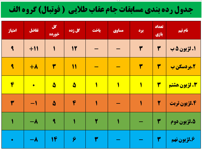 جدول رده بندی مسابقات بوستان بسیج نمایندگی کاشمر