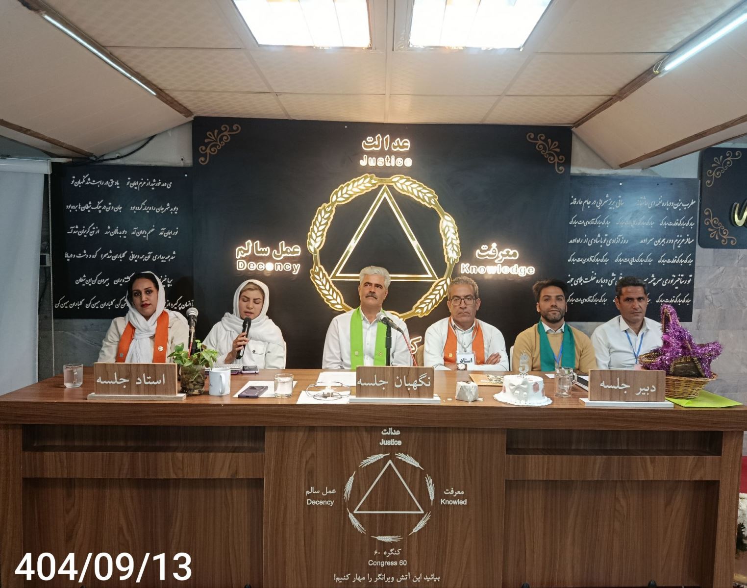 ابتدا خداوند را سپاسگزارم که یکبار دیگر در این جایگاه قرار گرفتم و از آقای مهندس و خانواده محترمتشون تشکر میکنم که این بستر رو برای ما فراهم کردن و از راهنمای خوبم خانم ژاله تشکر میکنم و از راهنمای سفر دومم خانه شهلا خیلی خیلی تشکر میکنم که اگر حال خوبی دارم و آموزش هایی که گرفتم مدیون این دو عزیز هستم و از آقا رضا خیلی خیلی تشکر میکنم که حال مسافر منو خوب کرد و از مسافرم تشکر میکنم و بهش تبریک میگم و خداروشکر که منم تونستم بیام کنگره و خدمت کنم و آموزش بگیرم و به حال خوب برسیم و هر دو همدیگر رو درک کنیم و از دختر و پسرم خیلی تشکر میکنم که در سختی ها کنارمون بودن و خیلی اذیت شدن امیدوارم حلامون کنن چه من و چه پدرشونو درسته که من مصرف کننده نبودم ولی خیلی حالم خراب بود ابوالفضل مصرف کننده بود و خیلی چیزا رو نمیدید و من خودم همه چیز رو به دوش میکشیدم پدرم و مادرم میگفتن بچه هاتو ول کن بیا تا کی میخوای با یک آدم مصرف کننده زندگی کنی ولی من ابوالفضل رو دوست داشتم بچه هامو دوست داشتم و خداروشکر اومدیم و به حال خوب رسیدیم و خداروشکر الان ابوالفضل خیلی بهتر شده قبلا نمیشد باهاش صحبت کنی جرعت نمیکردم بگم لیوان رو بزار کنار هم خودمو کتک کاری میکرد هم بچه هامو خداروشکر اومد کنگره سفرش خوب بود کنگره خیلی تغییرش داد خدا صداهامو شنید گریه هامو دید ناله هامو شنید و هر دوتامون عاشق خدمت هستیم و هر دوتامون راهنمایی رو دوست داریم و دوره قبل من مرزبان بودم و از همکارام خیلی تشکر میکنم و از ایجنت محترم خانم ژاله تشکر میکنم و از عزیزانی که با مشارکت کردن به ما تبریک گفتن تشکر میکنم امیدوارم این جایگاه رو همه یک روز تجربه کنند .