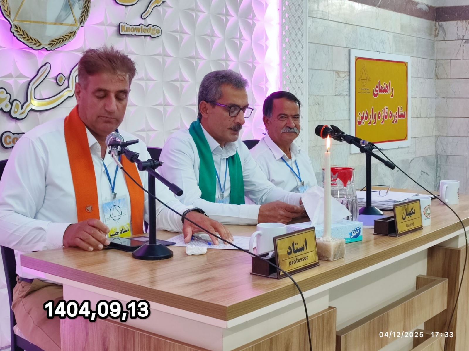 هشتمین جلسه از دوره دهم کارگاههای آموزشی عمومی کنگره ۶۰ نمایندگی دامغان با استادی راهنما مسافر مهدی، نگــهبانی مسافر مهدی و دبیری مسافر محمد با دستور جلسه «وادی دهم، صفت گذشته در انسان صادق نیست،چون جاری است» روز پنجشنبه مورخ1404/09/13 راس ساعت 17:00 آغاز به کار نمود.
