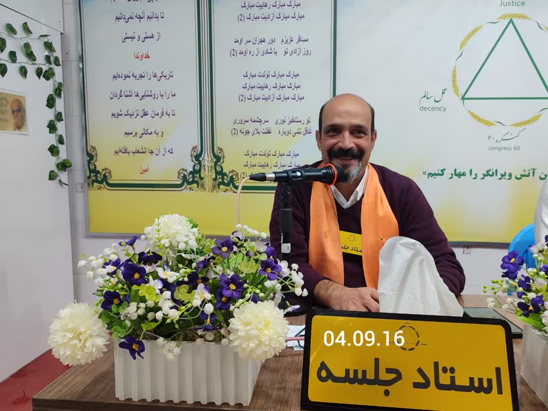 آقای مهندس همیشه میفرمایند خداوند قلم و رنگ را در دست ما گذاشته و ما هستیم که باید نقاشی زندگی و آیندهمان را ترسیم کنیم در این بستر عظیم کنگره فرصت تغییر رنگ و تغییر صفت برای همه فراهمشده و هر کس که فرمانبرداری و تلاش کند قطعاً به نتیجه میرسد امروز کنگره با بیش از صد شعبه و دهها هزار عضو به شکلی منظم و یکنواخت پیش میرود این نظم و یکدستی از تدبیر بنیان کنگره است و بیرون ازاینجا برای خیلیها باورکردنی نیست اما ما آن را زندگی کردیم و معجزه دی اس تی را با گوشت و پوست لمس کردیم پیشکسوتان زیادی برای ساختن این مسیر زحمت کشیدند از روزهایی که اولین جلسات اصفهان در پارک و سرما برگزار میشد تا زمانی که نمایندگی نائین با تلاش جمعی و با کمترین امکانات شکل گرفت همه با عشق و باور جلو آمدند و امروز ثمره آن را میبینیم این بذر اولیه که باایمان و خلوص کاشته شد مثل درخت بامبو بعد از سالها یکدفعه رشد کرد و شعبههای کنگره در سراسر کشور گسترش یافت وظیفه ما این است که اگر از این روش بهره بردیم و حالمان بهتر شد پیام را منتقل کنیم و نگذاریم صندلیمان خالی بماند بمانیم خدمت کنیم و کمک کنیم دیگران هم از تاریکی بیرون بیایند هر چه داریم از برکت این مسیر است و حفظ و گسترش آن به دست خود ماست در پایان از همه عزیزانی که از ابتدا تا امروز برای برپا ماندن کنگره زحمت کشیدند قدردانی میکنم و از حضور شما ممنونم که به صحبتهای من گوش دادید.