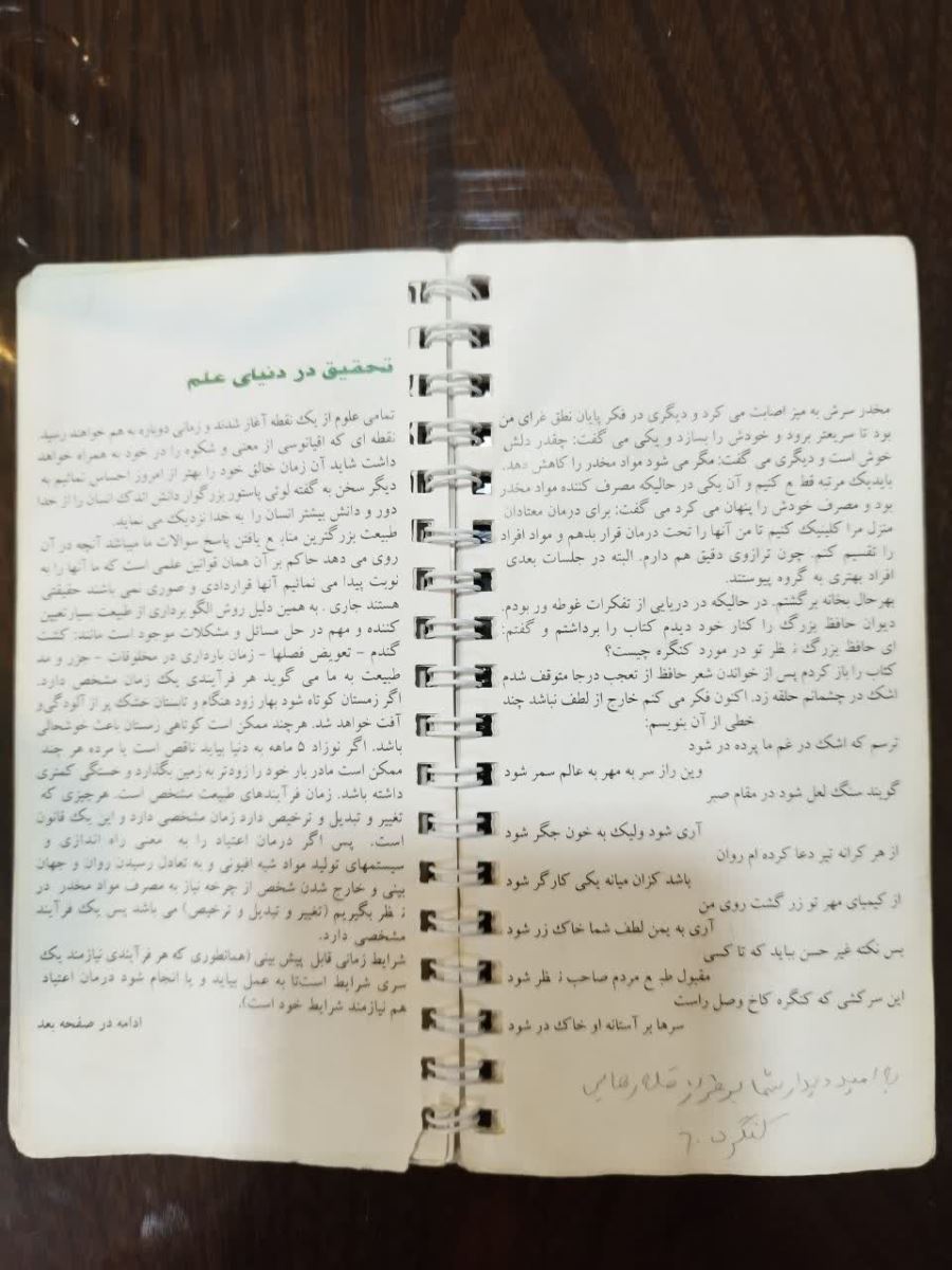 شاید یکی از دیدگاه ها و اهداف کلی جناب مهندس جهانی شدن کنگره ۶۰ و رساندن پیام درمان به سراسر گیتی و بار آموزشی برای من و شروع به حرکت کنگره با تمام فراز و نشیب ها سختی ها تلاش ها و کوشش ها خدمات ارزنده بنیان متفکر کنگره ۶۰ تا به امروز می باشد؛ که من دچار نسیان و فراموشی نشوم.