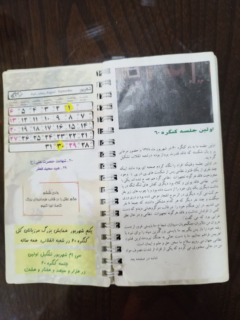 اما نکته قابل تفکر و تاتعقل در مورد شروع و حرکت جناب آقای مهندس و کنگره ۶۰ یک سالنامه از سال هزار و ۱۳۸۸شمسی به دستم رسیده که در واقع حرکت اولین جلسه کنگره ۶۰ را به صورت تمثیل بیان می نماید؛ با این مضمون اولین جلسه کنگره 60