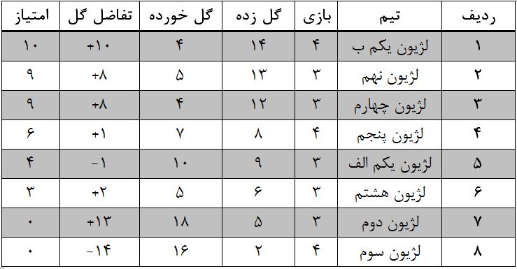 نتایج و جدول امتیازات مسابقات فوتسال جام عقاب طلایی
