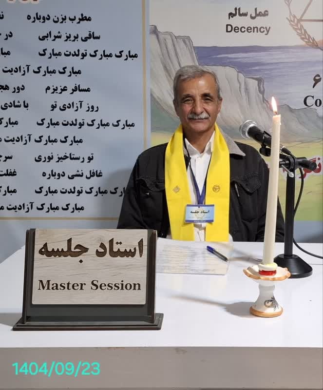 سلام دوستان جواد هستم یک مسافر. من هم خدای خودم را هزاران هزار بار سپاسگزارم که توفیق داد در جمع شما دوستان باشم. از جناب مهندس دژاکام و خانواده محترمشان بابت چنین بستری تشکر میکنم.که آمدم در کنار شما دوستان نشستم و آموزش گرفتم، و به حال خوش رسیدم. هزاران هزاران بار بازهم خدا را شکرمیکنم. از ایجنت محترم شعبه آقا جلال و تمامی مرزبانان عزیز و راهنمایان عزیز و همچنین راهنمای سفر سیگارم آقای منصور کمال تشکر و سپاسگزاری را دارم. از نگهبان جلسه آقا رسول سپاسگزاری میکنم که استادی و مسولیت جلسه را به من واگذار نمودند تا خدمت کنم.
