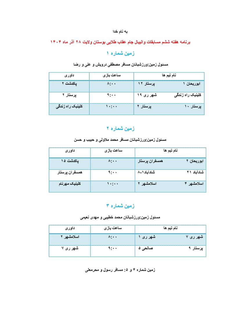 تربیت بدنی برنامه و نتایج مسابقات والیبال جام عقاب طلایی کنگره ۶۰ در بوستان ولایت منبع: پارک ولایت (تهران) دوشنبه 24 آذر 1404 تعداد بازدید از این مطلب : 92 برنامه هفته ششم و نتایج هفته پنجم (دور دوم)مسابقات والیبال جام عقاب طلایی کنگره ۶۰ در بوستان ولایت مورخ1404/09/28 گزارش تصویری از تیم ها بارگذاری: مرزبان خبری(مسافر رحمان) منبع: پارک ولایت (تهران) دوشنبه 24 آذر 1404 تعداد بازدید از این مطلب : 92 ویژه ها هشدار نایدا: وقفه در بروزرسانی و ارائه برخی از خدمات به دلیل وقفه در تأمین بودجۀ دولتی امریکا پذیرش مقاله مهندس حسین دژاکام برای ارائه در کنفرانس "مراقبت از اعصاب"،شیکاگو، امریکا (2026) گامی سرنوشتساز از سوی مهندس حسین دژاکام در درمان کووید-۱۹ و سارس ارائه مقاله جدید و برجسته مهندس حسین دژاکام در حوزه درمان اعتیاد با روش DST با دقت سلولی مولکولی در کنفرانس بین المللی درمان اعتیاد در اورلاندو، فلوری مقاله "تأثیرات رفتاری و مولکولی پروتکل دی اس تی بر مدل حیوانی اعتیاد به تریاک" از مهندس حسین دژاکام، درصدر محافل علمی دنیا مورد بررسی و پذیرش قرار گر دستاورد شگفتآور دیگری از تیم تحقیقاتی کنگره 60 در ریسرچ گیت منتشر گردید. دستاورد شگفت آور دیگری از کنگره 60، انتشار مقاله مهار متاستاز سرطان سینه به صورت short communication رویکردی نوین در درمان سرطان