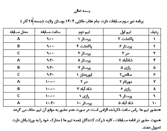 تربیت بدنی برنامه مسابقات دارت جام عقاب طلایی کنگره 60(پارک ولایت) منبع: پارک ولایت (تهران) دوشنبه 24 آذر 1404 تعداد بازدید از این مطلب : 129 جدول تیم های شرکت کننده ---------------------------- با تشکر نگهبان دارت بارگذاری: مرزبان خبری (مسافر رحمان) منبع: پارک ولایت (تهران) دوشنبه 24 آذر 1404 تعداد بازدید از این مطلب : 129 ویژه ها هشدار نایدا: وقفه در بروزرسانی و ارائه برخی از خدمات به دلیل وقفه در تأمین بودجۀ دولتی امریکا پذیرش مقاله مهندس حسین دژاکام برای ارائه در کنفرانس "مراقبت از اعصاب"،شیکاگو، امریکا (2026) گامی سرنوشتساز از سوی مهندس حسین دژاکام در درمان کووید-۱۹ و سارس ارائه مقاله جدید و برجسته مهندس حسین دژاکام در حوزه درمان اعتیاد با روش DST با دقت سلولی مولکولی در کنفرانس بین المللی درمان اعتیاد در اورلاندو، فلوری مقاله "تأثیرات رفتاری و مولکولی پروتکل دی اس تی بر مدل حیوانی اعتیاد به تریاک" از مهندس حسین دژاکام، درصدر محافل علمی دنیا مورد بررسی و پذیرش قرار گر دستاورد شگفتآور دیگری از تیم تحقیقاتی کنگره 60 در ریسرچ گیت منتشر گردید. دستاورد شگفت آور دیگری از کنگره 60، انتشار مقاله مهار متاستاز سرطان سینه به صورت short communication رویکردی نوین در درمان سرطان