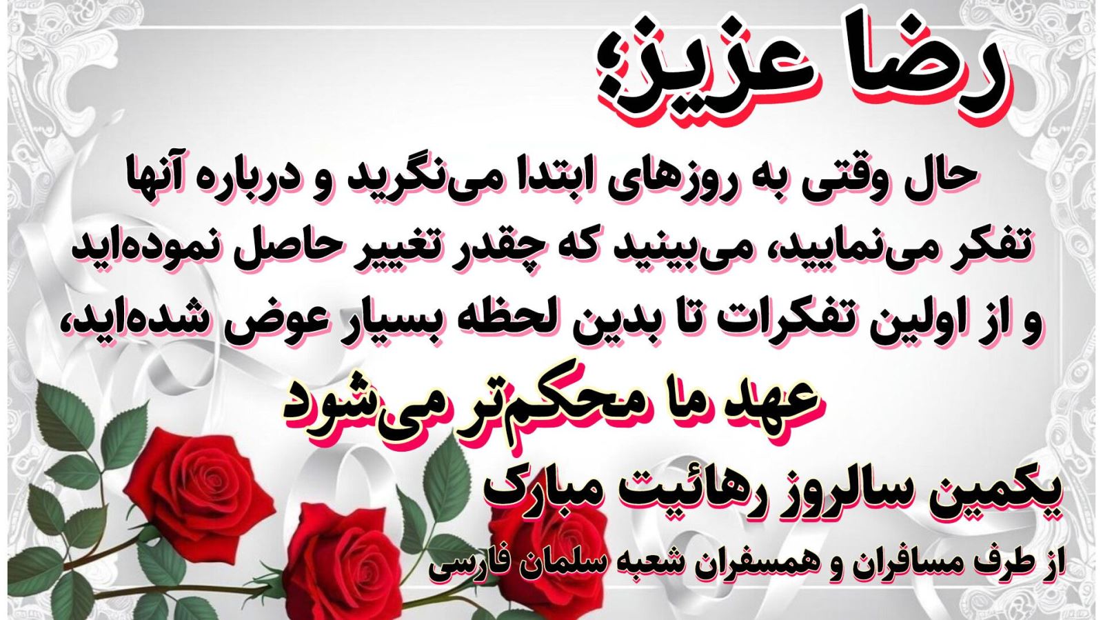 ۲۶ ماه زمان برد تا من بتوانم در این جایگاه قرار بگیرم و این موضوع من را یاد صحبت آقای مهندسدژاکام میاندازد که فرمودند: ما بعد از ۲۸ سال توانستیم ۱۰۰ هزار نفر را به درمان قطعی اعتیاد برسانیم و در کنگره ۶۰ متوجه شدیم که کار بسیار بزرگ و عظیمی را انجام دادهایم. من روز اولی که وارد کنگره ۶۰ شدم، داخل شعبه، تولد و آزادمردی راهنمای محترم، آقای سعید چنگانیان بود، وقتی وارد شعبه شدم و داخل جلسه نشستم و آقا سعید را در جایگاه استادی دیدم، شرایط و حسوحال بسیار خوبی وجود داشت که تمام وجود من را فرا گرفت و بذر این جایگاه همان شش سال پیش در وجود من کاشته شد. برای رسیدن به این جایگاه، باید واقعاً خواسته داشته باشیم من نمیگویم از همان روز اول خواسته خیلی قوی داشتم اما ماندگار بودم، تلاش کردم و توانستم به این جایگاه برسم و این موضوع را به این خاطرتولد مسافر رضا میگویم.