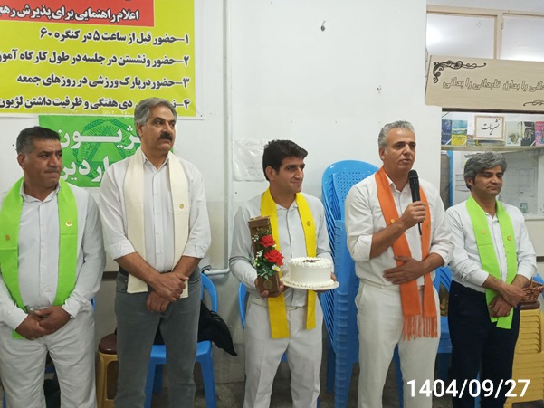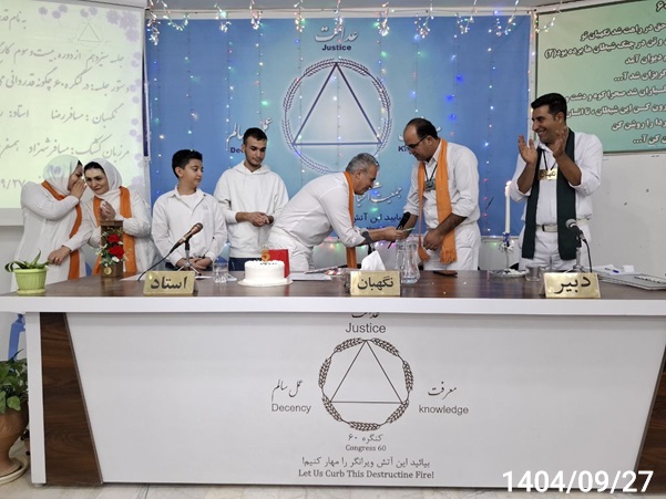 در مورد دستور جلسه‌‌ی دوم جشن آزادمردی راهنمایی محترم مسافر حسن و همسفرشان. مسافر حسن حدود ۶ سال پیش وارد کنگره شد سفر بسیار خوبی داشت در ادامه‌ی سفرش با اصرار من همسفرشان را هم به کنگره آوردند که حرکت ایشان بسیار مؤثر بود و در کنار هم توانستند دو تا از خدمتگزاران صدیق کنگره۶۰ باشند‌. حسن یک دوره در جایگاه مرزبانی خدمت کردند و در ادامه آزمون راهنمایی را به همراه همسفرشان دادند و قبول شدند و در حال حاضر هر دو بزرگوار در حال انجام خدمت در جایگاه راهنما هستند. برای ایشان و خانواده محترمشان بهترین‌ها را آرزو می‌کنم و تبریک می‌گویم خدمت آقای مهندس و خانواده محترمشان. به راهنمای همسفرشان تبریک می‌گویم. امیدوارم که قدر نعمتی که خداوند بر سر زندگی‌شان قرار داده است را به بهترین شکل ممکن بدانند و به‌واسطه‌ی خدمتی که انجام می‌دهند خیروبرکت در زندگی‌شان جاری باشد‌. از اینکه به صحبت‌های من گوش کردید از همه‌ی شما ممنونم.