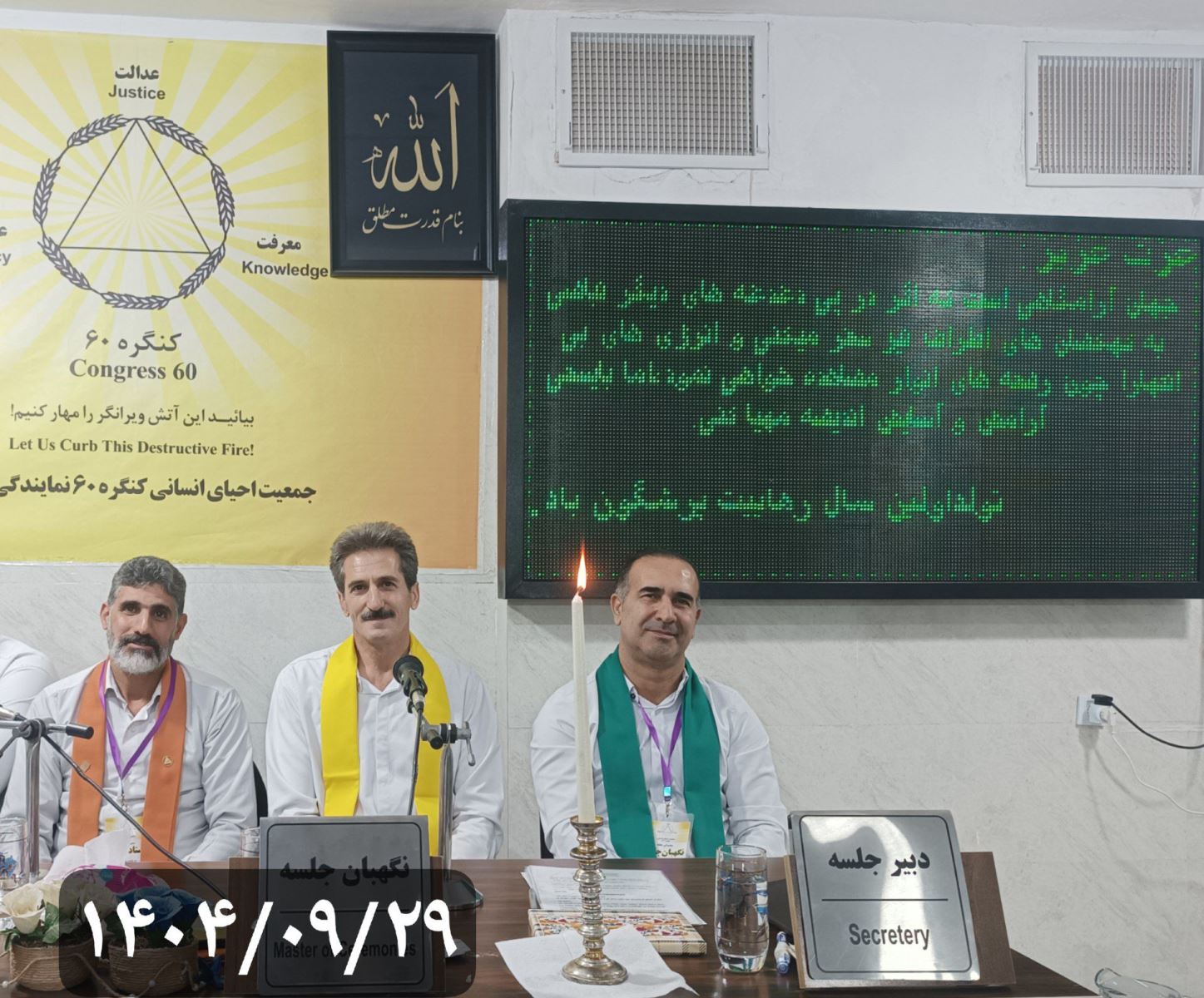 بخش دوم دستور جلسه تولد مسافر عزت است که ایشان با حال خراب وارد کنگره شدند هم از لحاظ فیزیولوژی و جهانبینی بسیار در وضعیت بدی بودند مصرف آن شیشه بود که امیدی به درمان نداشتند .با مصرف B2وارد لژیون بنده شدند . عزت الله که در طول سفر ازارتفاع افتادند که بسیار آسیب دیدند که بنده خودم را به ایشان رساندم که دیدم حالش بسیار بد بود که گفتند به ایشان مورفین تزریق کردند و گفتم که اصلا ایرادی ندارد با اینکه وضعیتش بهم خورده بود ،خواسته بسیار قوی داشت که همانند وادی یازدهم دوست داشت به اقیانوس برسد وایشان بسیار عشق خدمت داشت که باعث شد هر روزحالش بهتر شود واینکه به علت آن مشکل ،بیکار هم شد اما توانست با تمام مشکلات رها شود و درادامه درکنگره خدمتگزار شود وبا جون ودل خدمت را انجام داد وهیچ زمان از خدمت خسته نشد وبه خودش وهمفسراش وپسرش امیر وراهنمای همسفرش تبریک میگویم. امیدوارم که درادامه شال راهنمایی را دریافت نماید.