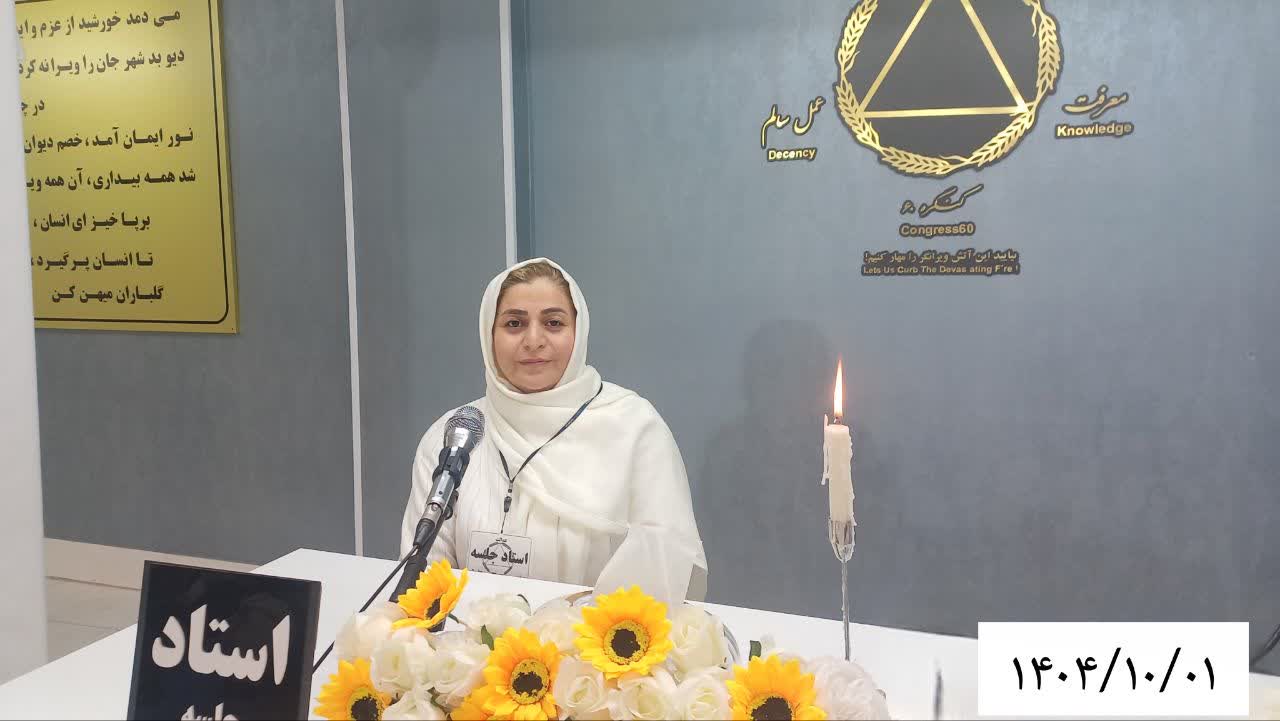 خدای خودم را شکر میکنم که من را در مسیر کنگره قرارداد تابه آرامش برسم اولازهمه از خانم اعظم راهنمای بسیار خوبم تشکر میکنم که هرچه دارم از راهنمای خوبم دارم با آموزشهای که به من دادند؛ چگونه زندگی کردن را به من آموختند از ایجنت محترم خانم نوشین تشکر میکنم و خانم مریم ایجنت قبلی خیلی تشکر میکنم از خانم سمیه مرزبان قبلی و به مرزبانان فعلی خسته نباشید عرض می کنم. از راهنمایان تشکر میکنم که از هرکدام، درسی گرفتم از نگهبان و دبیر جلسه هم تشکر میکنم که اجازه دادند من امروز این جایگاه را تجربه کنم .دستور جلسه ی این هفته وادی یازدهم: چشمههای جوشان ورودهای خروشان همه به بحرو اقیانوس میرسند از این دستور جلسه فراری بودم نمیدانستم که قسمت من می شود، هفته پیش هم امتحان دادیم به خانم اعظم گفتم آنقدر تکرار و تمرین کردم که دستور جلسه به خودم افتاد این وادی اشاره به تاریکی میکند .