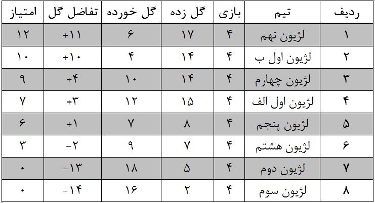جدول مسابقات جام عقاب طلایی نمایندگی پارک لاله تاکستان در پایان دور چهارم