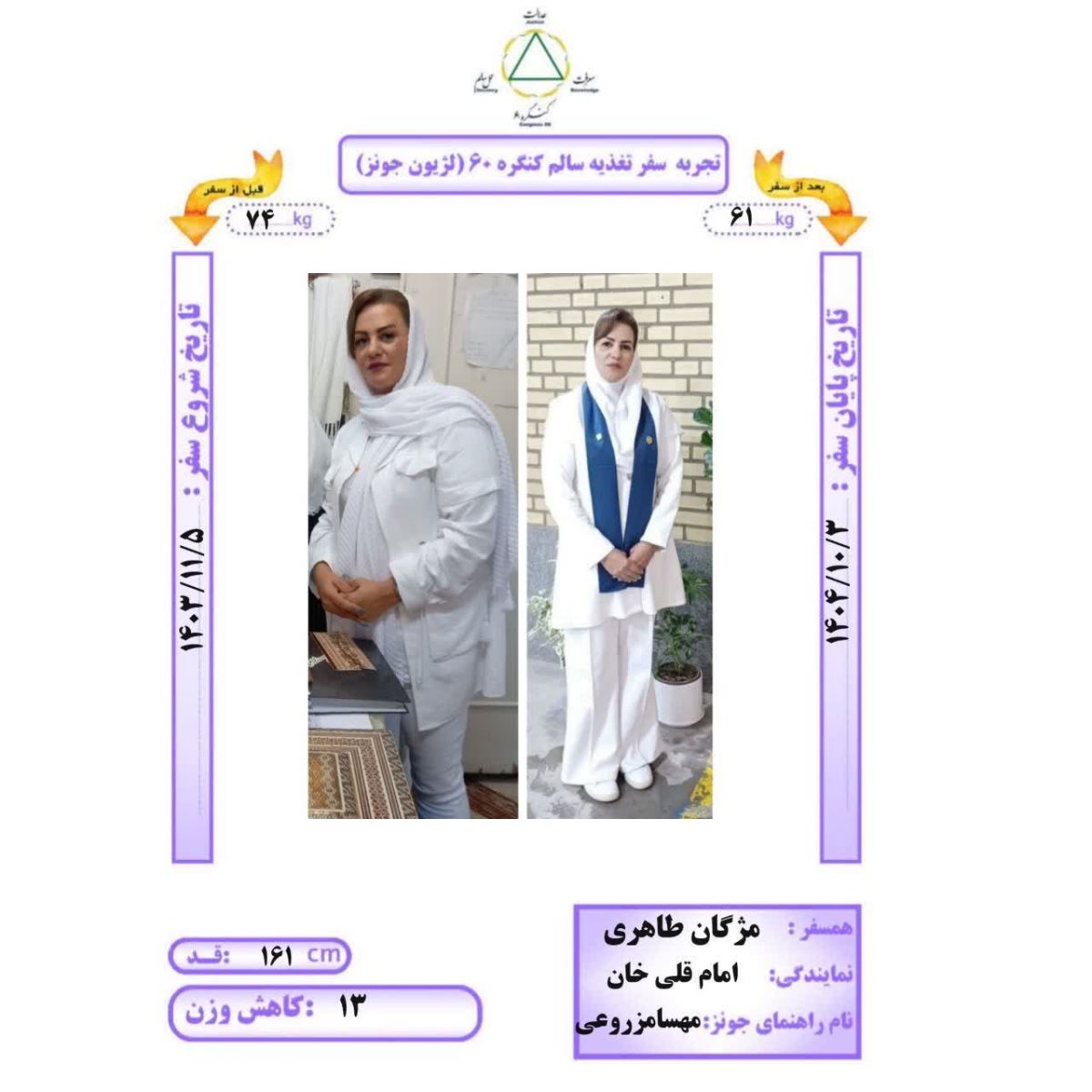 در روز چهارشنبه ۳ دی ماه ۱۴۰۴ رهجو همسفر مژگان، راهنما همسفر مریم به نیابت راهنما همسفر مهسا از نمایندگی امامقلی، با قد ۱۶۱ سانتیمتر و وزن اولیه ۷۴ کیلوگرم به مدت ۱۰ ماه و ۲۸ روز به روش Dezhakam سفر کردند؛ ۱۳ کیلوگرم کاهش وزن داشتند و به وزن ۶۱ کیلوگرم رسیدند و با دستان پرمهر آقای مهندس آزاد و رها شدند.