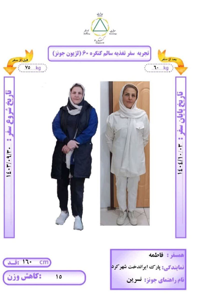 در روز چهارشنبه ۳ دی ماه ۱۴۰۴ همسفر فاطمه رهجوی راهنما همسفر نسرین، نمایندگی پارک ایراندخت شهرکرد با قد ۱۶۰ سانتیمتر و وزن اولیه ۷۵ کیلوگرم به مدت ۱۳ ماه و ۳ روز به روش Dezhakam سفر کردند؛ ۱۵ کیلوگرم کاهش وزن داشتند و به وزن ۶۰ کیلوگرم رسیدند و با دستان پرمهر آقای مهندس آزاد و رها شدند.