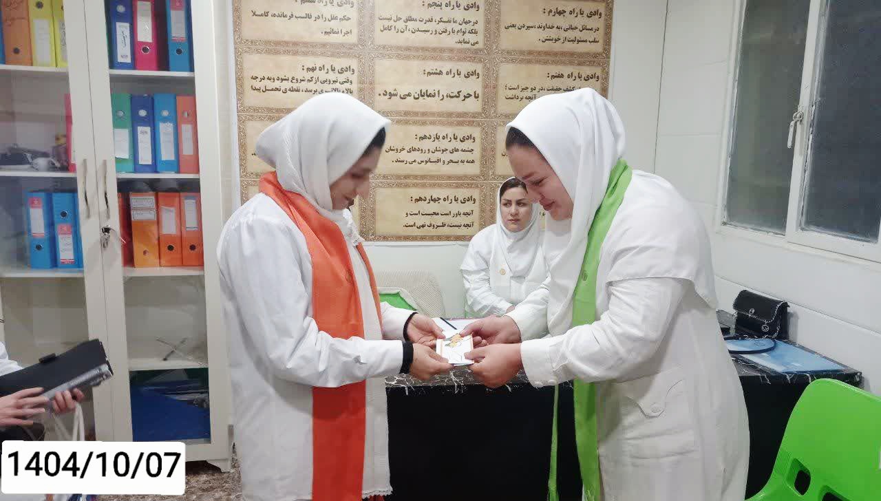 در ادامه جلسه دبیر دوم دوره پنجم راهنمای تازه واردین همسفر بهاره از دبیر اول راهنما همسفر فاطمه با دادن پاکت تقدیر کرد.
