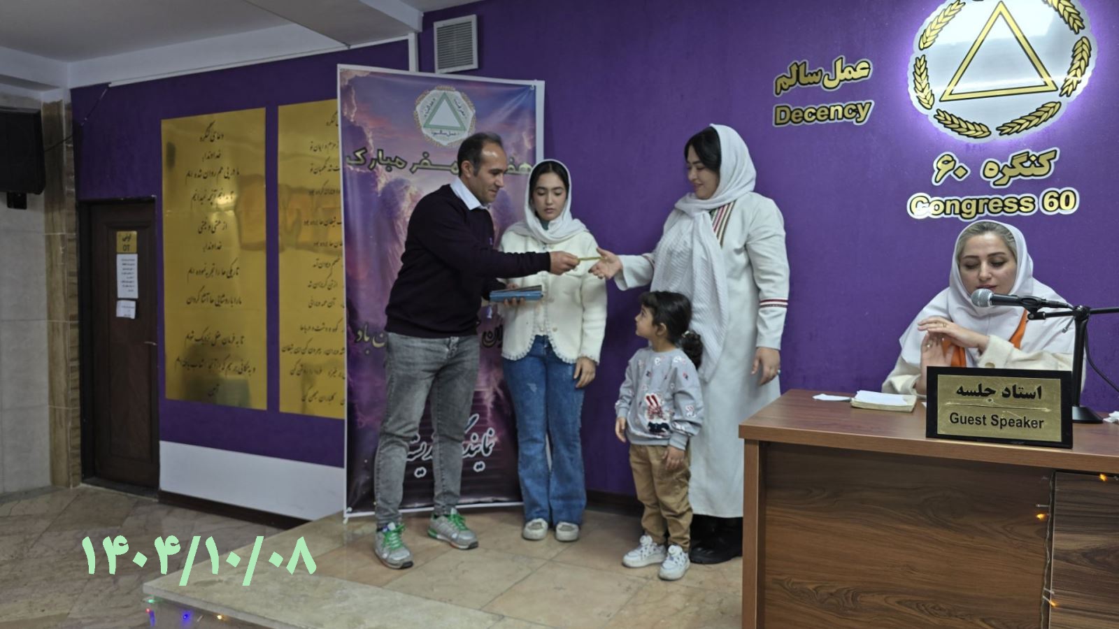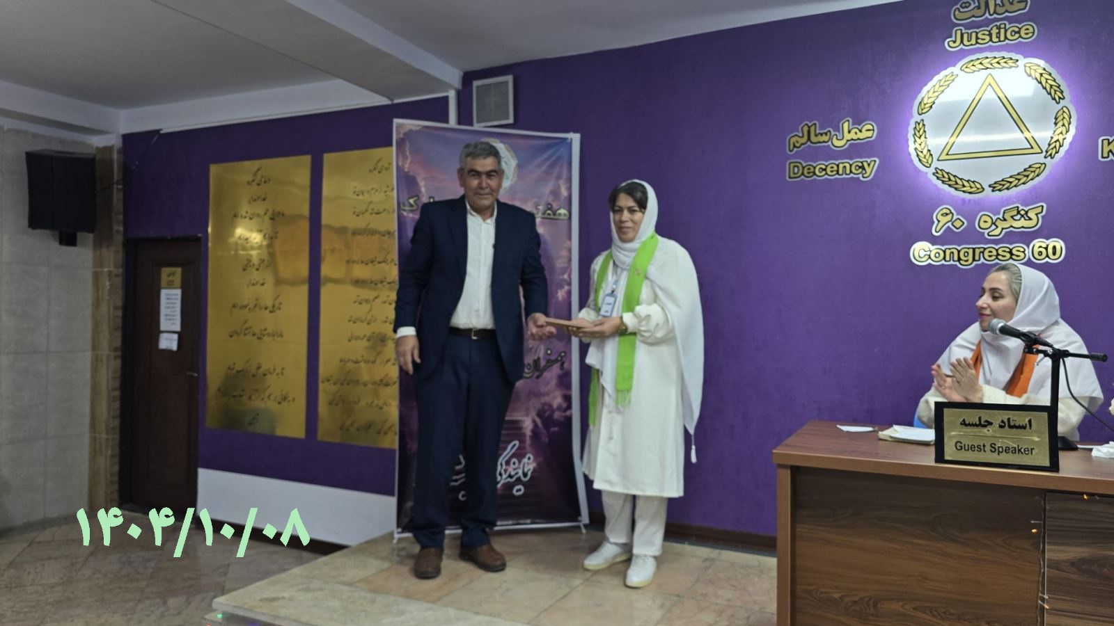 این جشن را به خانم انی بزرگ تبریک میگویم و این هفته و روز زیبای همسفر را به تمام خانواده این بزرگواران، آقای امین، خانم آنی، خانم شانی و همه همسفران کنگره۶۰ خصوصاً همسفران نمایندگی اندیشه تبریک عرض میکنم. همچنین تبریک ویژهای دارم به همسفرانی که در مکانهای مختلف ما را یاری میدهند و در نهایت تبریک به همسفران کوچک خودم (رهام و هلما) که امروز در کنار من بودند، همسرم که اجازه داد تا در این مسیر خدمت کنم، مسافرم که برادرم هستند و مادرم که همیشه همراه و یاور من بودهاند.