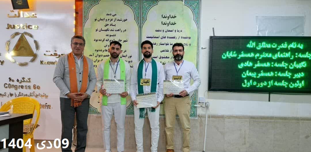 اولین جلسه از دوره اول سری کارگاههای آموزشی خصوصی کنگره۶۰ نمایندگی دکتر علیرضا (مبارکه)، با استادی راهنمای محترم همسفر شایان، نگهبانی همسفر هادی و دبیری همسفر پیمان با دستورجلسه «جشن همسفر،نقش همسفران خانم وآقا در درمان»روز سه شنبه 09 دی ماه ۱۴۰۴ راس ساعت ۱۷ آغاز به کار نمود.