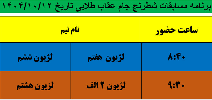 برنامه مسابقات شطرنج جام عقاب طلایی به شرح جدول زیر اعلام می گردد: