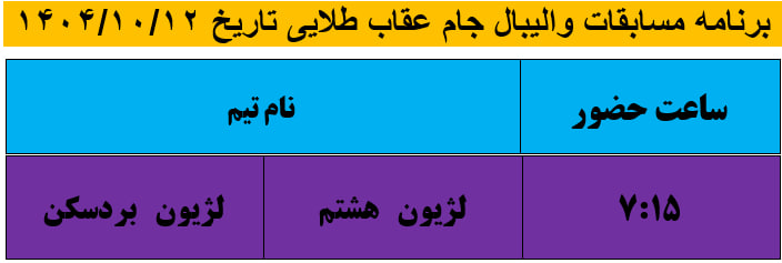 برنامه مسابقات والیبال جام عقاب طلایی به شرح جدول ذیل پیگیری می گردد: