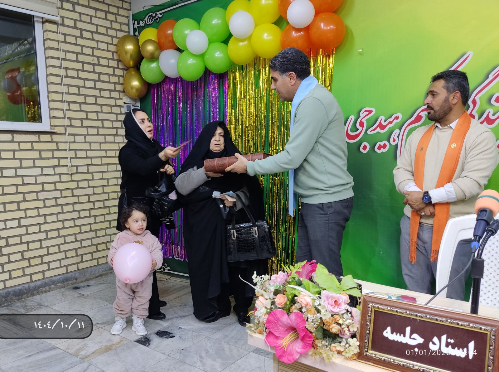 اهدای یک جلد قرآن نفیس لژیون سردار به نیابت از جناب مهندس به خانواده مرحوم مسافر کاظم مداح جهت اهدای یک قطعه زمین به کنگره 60