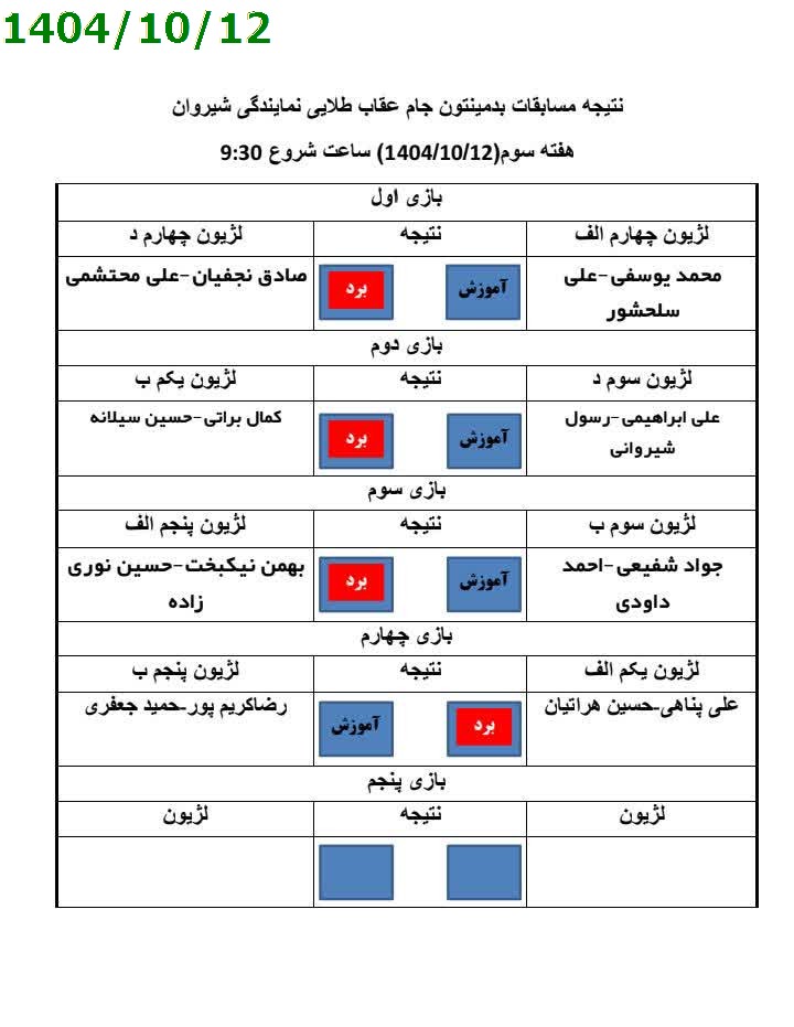 نتیجه مسابقات بدمینتون: