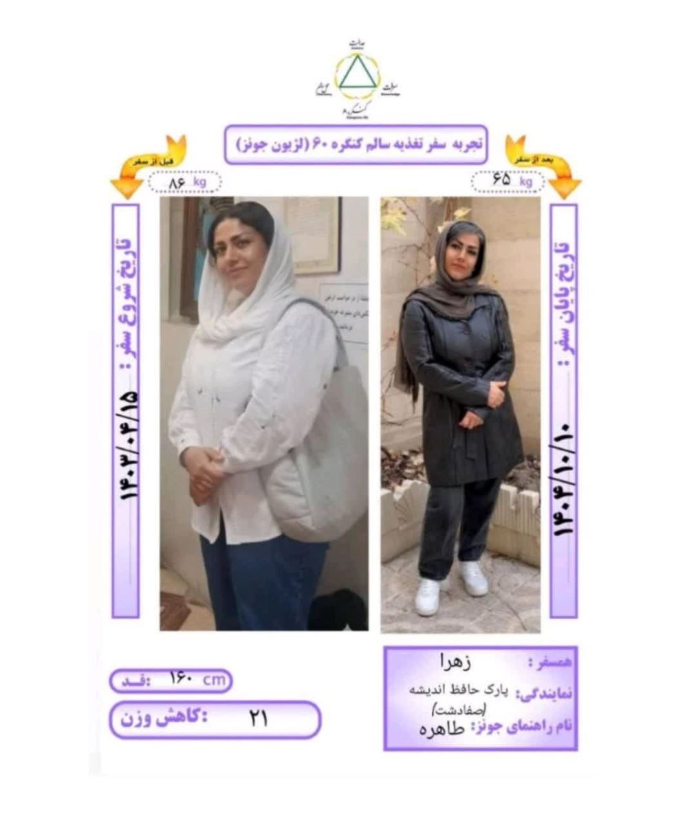 در روز چهارشنبه ۱۰ دیماه ۱۴۰۴ همسفر زهرا رهجوی راهنما همسفر طاهره از نمایندگی پارک حافظ اندیشه (صفادشت) با قد ۱۶۰ سانتیمتر و وزن اولیه ۸۶ کیلوگرم به مدت ۱۷ ماه و ۲۵ روز به روش Dezhakam سفر کردند؛ ۲۱ کیلوگرم کاهش وزن داشتند و به وزن ۶۵ کیلوگرم رسیدند و با دستان پرمهر آقای مهندس آزاد و رها شدند.