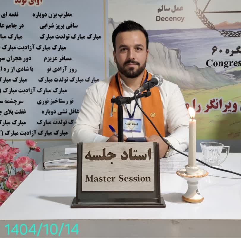 سلام دوستان حسین هستم یک مسافر. خدای خودم را شاکر و سپاسگزارم بابت این حال خوشی که دارم و هم چنین از نگهبان جلسه تشکر میکنم بابت این فرصت خدمتی که به من دادند تا بتوانم از شما دوستان آموزش بگیرم. بار اولی است که به نمایندگی کبودراهنگ آمدهام.سطح انرژی دوستان بسیار بالاست. درود میفرستم خدمت مهندس دژاکام بابت فراهم کردن این بستر آموزشی کنگره، که ما در هر شهری که میرویم جایی بنام کنگره 60 وجود دارد که مثل خانهی ما میباشد..jpg)