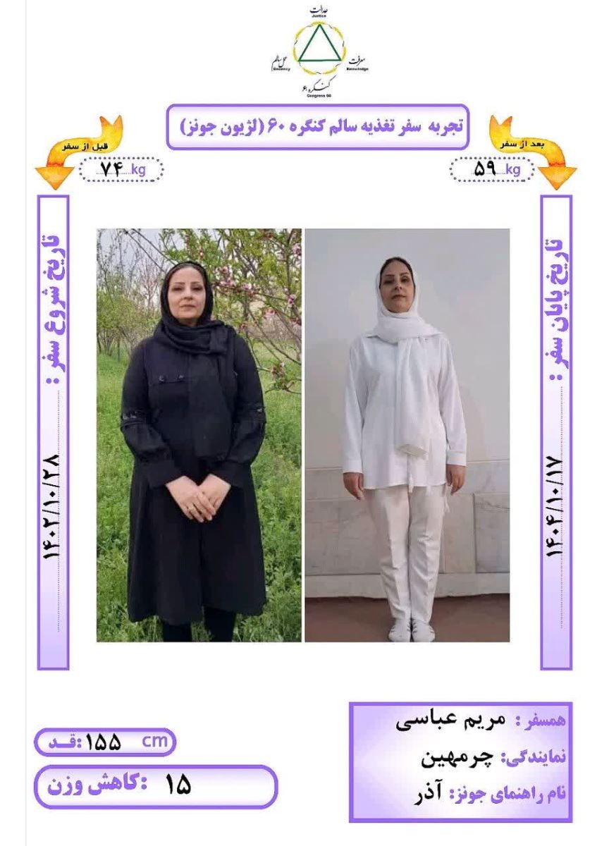در روز چهارشنبه ۱۷ دیماه ۱۴۰۴ همسفر مریم رهجوی راهنما همسفر آذر از نمایندگی چرمهین با قد ۱۵۵ سانتیمتر و وزن اولیه ۷۴ کیلوگرم به مدت ۱۱ ماه و ۱۹ روز به روش Dezhakam سفر کردند؛ ۱۵ کیلوگرم کاهش وزن داشتند و به وزن ۵۹ کیلوگرم رسیدند و با دستان پرمهر آقای مهندس آزاد و رها شدند.