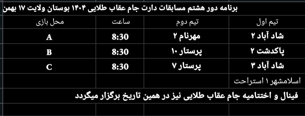 تربیت بدنی برنامه مسابقات دارت جام عقاب طلایی کنگره ۶۰ (بوستان ولایت) منبع: پارک ولایت (تهران) سه شنبه 14 بهمن 1404 تعداد بازدید از این مطلب : 119 بارگذاری: مرزبان خبری مسافر رحمان منبع: پارک ولایت (تهران) سه شنبه 14 بهمن 1404 تعداد بازدید از این مطلب : 119 ویژه ها هشدار نایدا: وقفه در بروزرسانی و ارائه برخی از خدمات به دلیل وقفه در تأمین بودجۀ دولتی امریکا پذیرش مقاله مهندس حسین دژاکام برای ارائه در کنفرانس "مراقبت از اعصاب"،شیکاگو، امریکا (2026) گامی سرنوشتساز از سوی مهندس حسین دژاکام در درمان کووید-۱۹ و سارس ارائه مقاله جدید و برجسته مهندس حسین دژاکام در حوزه درمان اعتیاد با روش DST با دقت سلولی مولکولی در کنفرانس بین المللی درمان اعتیاد در اورلاندو، فلوری مقاله "تأثیرات رفتاری و مولکولی پروتکل دی اس تی بر مدل حیوانی اعتیاد به تریاک" از مهندس حسین دژاکام، درصدر محافل علمی دنیا مورد بررسی و پذیرش قرار گر دستاورد شگفتآور دیگری از تیم تحقیقاتی کنگره 60 در ریسرچ گیت منتشر گردید. دستاورد شگفت آور دیگری از کنگره 60، انتشار مقاله مهار متاستاز سرطان سینه به صورت short communication رویکردی نوین در درمان سرطان