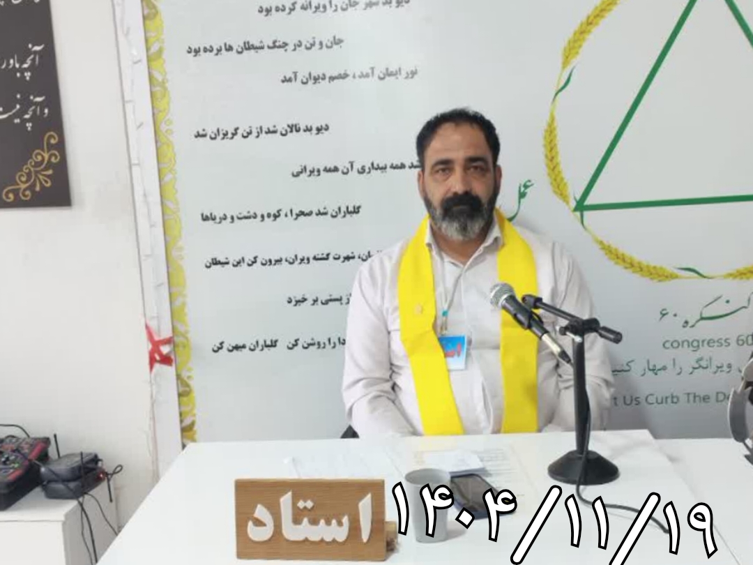 ششمین جلسه از دوره هفتم کارگاه های آموزشی خصوصی کنگره ۶۰ نمایندگی دکتر احمد با استادی مسافر روح الله، نگهبانی مسافر مجید ،دبیری مسافر حمید با دستورجلسه(D.sap) یکشنبه ۱۴۰۴/۱۱/۱۹ساعت ۱۵.۳۰ آغاز به کار کرد.