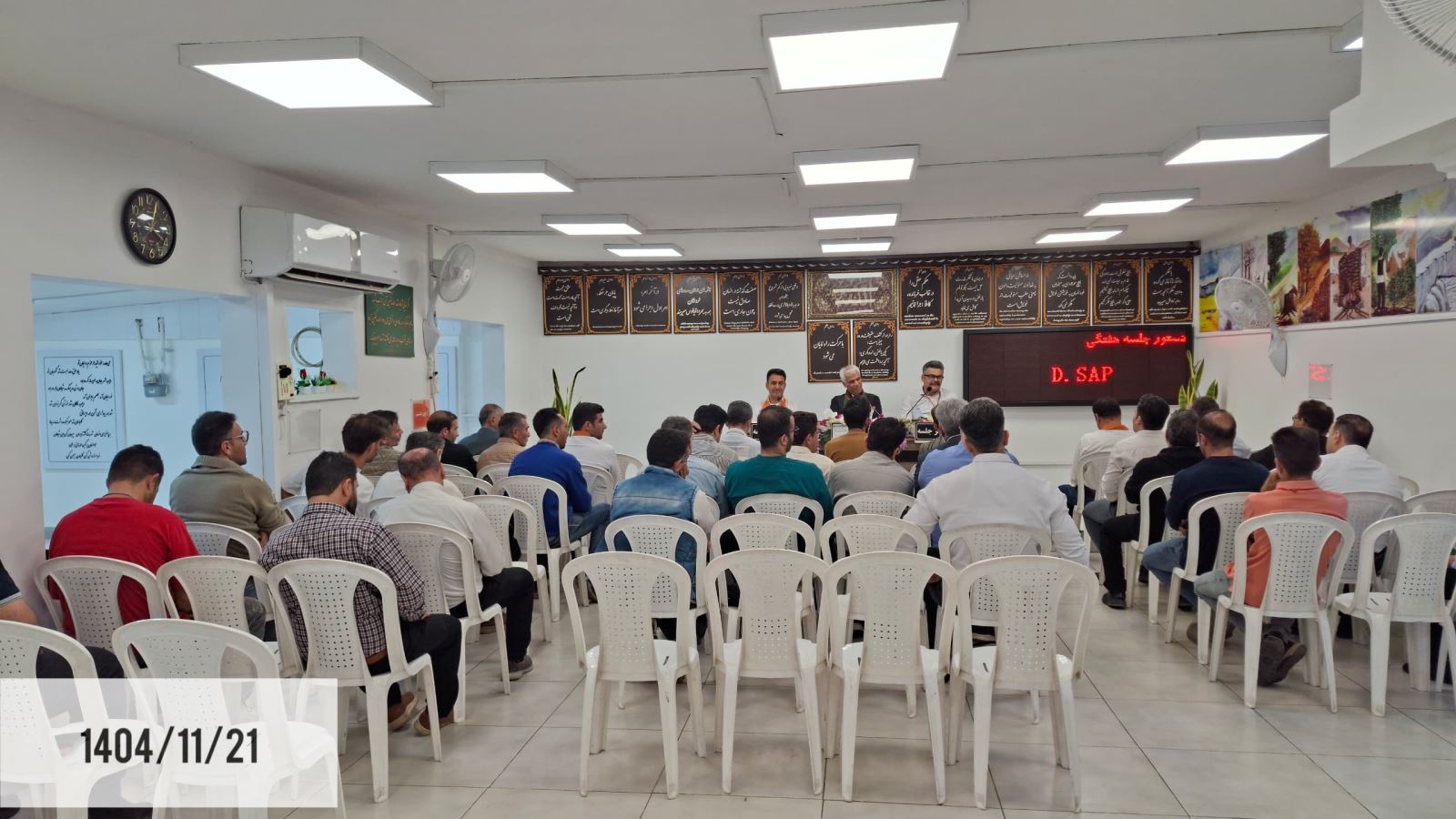 جلسه اول از دوره چهلوچهارم کارگاههای آموزشی خصوصی کنگره ۶۰ نمایندگی دانیال اهواز با استادی راهنمای محترم مسافر حسن، نگهبانی مسافر مهدی و دبیری مسافر مرتضی، با دستور جلسه «دیسپ D.sap»، در روز سهشنبه مورخ 1404/11/21 ساعت ۱۵:۳۰ آغاز به کار نمود.