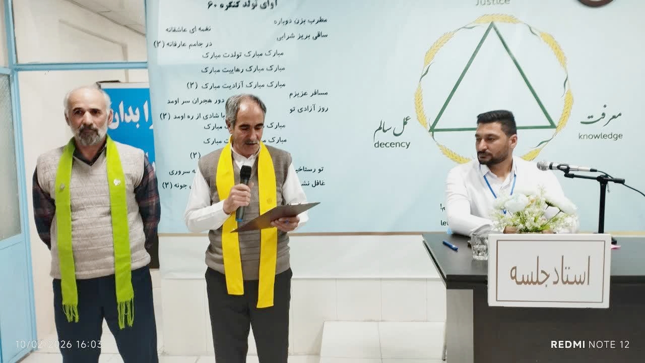 در آغاز لازم میدانم از راهنمای عزیزم، حسین اقا، که امروز نیز در جایگاه نگهبان جلسه حضور دارند، صمیمانه قدردانی کنم. ایشان در طول نه ماه گذشته با صبر، دقت و محبت، همراه و پشتیبان من بودند. همچنین از ایجنت محترم آقای مجید و مرزبانان محترم، و نیز از جناب اقای مهندس و خانواده ارجمند ایشان که خدمتگزاران صادق کنگره ۶۰ هستند، تشکر و قدردانی میکنم.