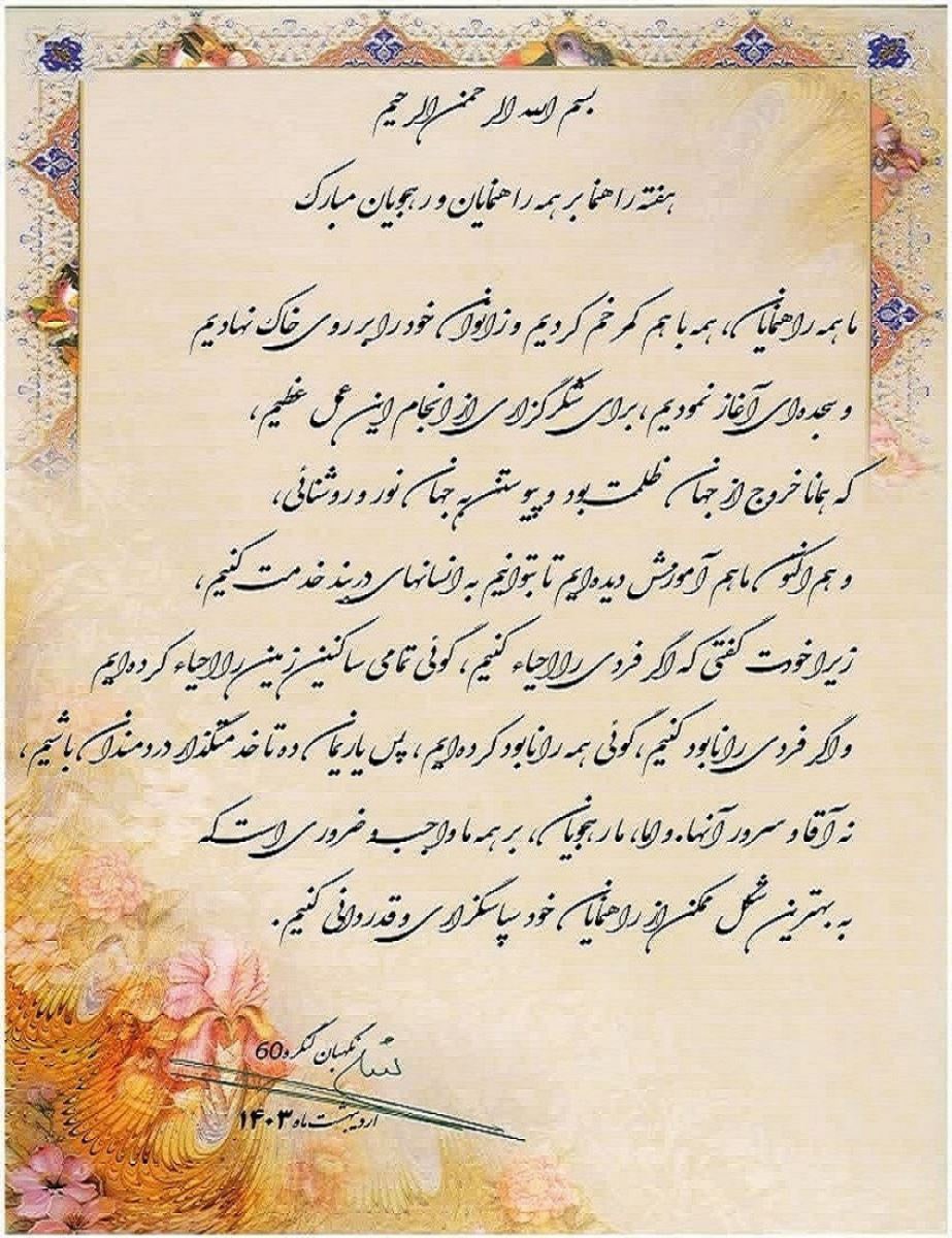 قلم به دست گرفته تا بر روی صفحه سفید کاغذ دلنوشتهای بنویسم ولی انگشتانم قدرت حرکت ندارند و ذهنم یاری نمیکند که چه بگویم و چگونه در وصف فرشتهای دلسوز و مهربان بنویسم. شمع را میسازند تا بسوزد ولی او میسوزد تا بسازد. زمانی که با بال و پرهای سوخته و پر از ناامیدی در این مسیر قدم گذاشتم نمیدانستم کجای زندگیام کار خیری کرده بودم که خداوند مرا با فرشتهای آشنا کرد که بالهایش را گشوده بود تا بال پرواز نا امیدیهای من شود و با آن قلب پر از مهر و تپندهاش، تبسمهای زیبایش و چشمهای پر از امید، یاریگر غصههای دل من باشد .