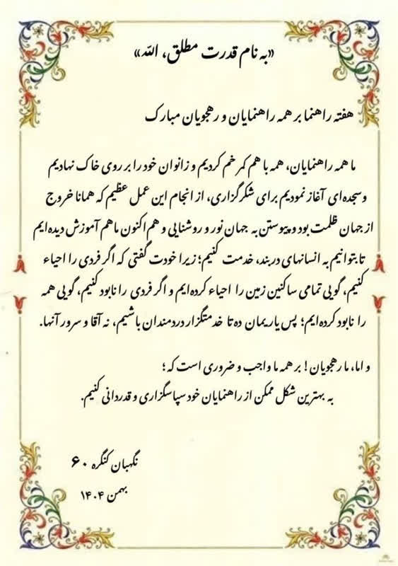 هفته راهنما را صمیمانه به شما تبریک عرض میکنیم. حضور آگاهانه و دلسوزانه شما چراغ راهی است برای آنان که در مسیر زندگی، دانش یا سفر به دنبال جهت و معنا هستند. شما با کلام دلگرم کننده خود، امید و انگیزهای دوباره برای حرکت در مسیر درست به ما بخشیدید.