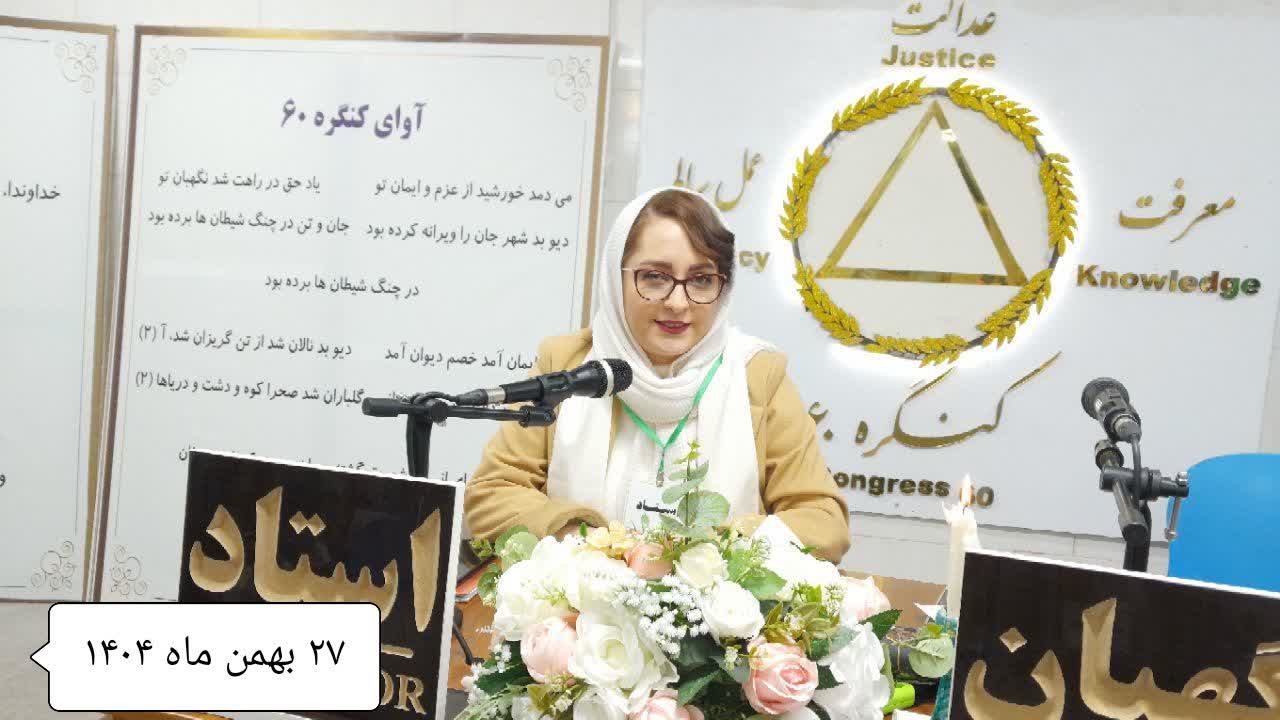 خدا را شکر میکنم که توفیق شد در کنگره ۶۰ حضور داشته باشم و بتوانم آموزش بگیرم. این هفته زیبا را اول به آقای مهندس و اولین راهنمای کنگره ۶۰، خانم آنی بزرگوار تبریک میگویم؛ علیالخصوص راهنماهای بامحبت نمایندگی آبیک. از راهنمای خودم خیلی سپاسگزارم اگر من الان در جایگاهی هستم و در کنگره حضور دارم به واسطه آموزشهای ایشان است، انشاءالله هرجا هستند تنشان سلامت باشد و از همینجا این هفته قشنگ را خدمتشان تبریک عرض میکنم.