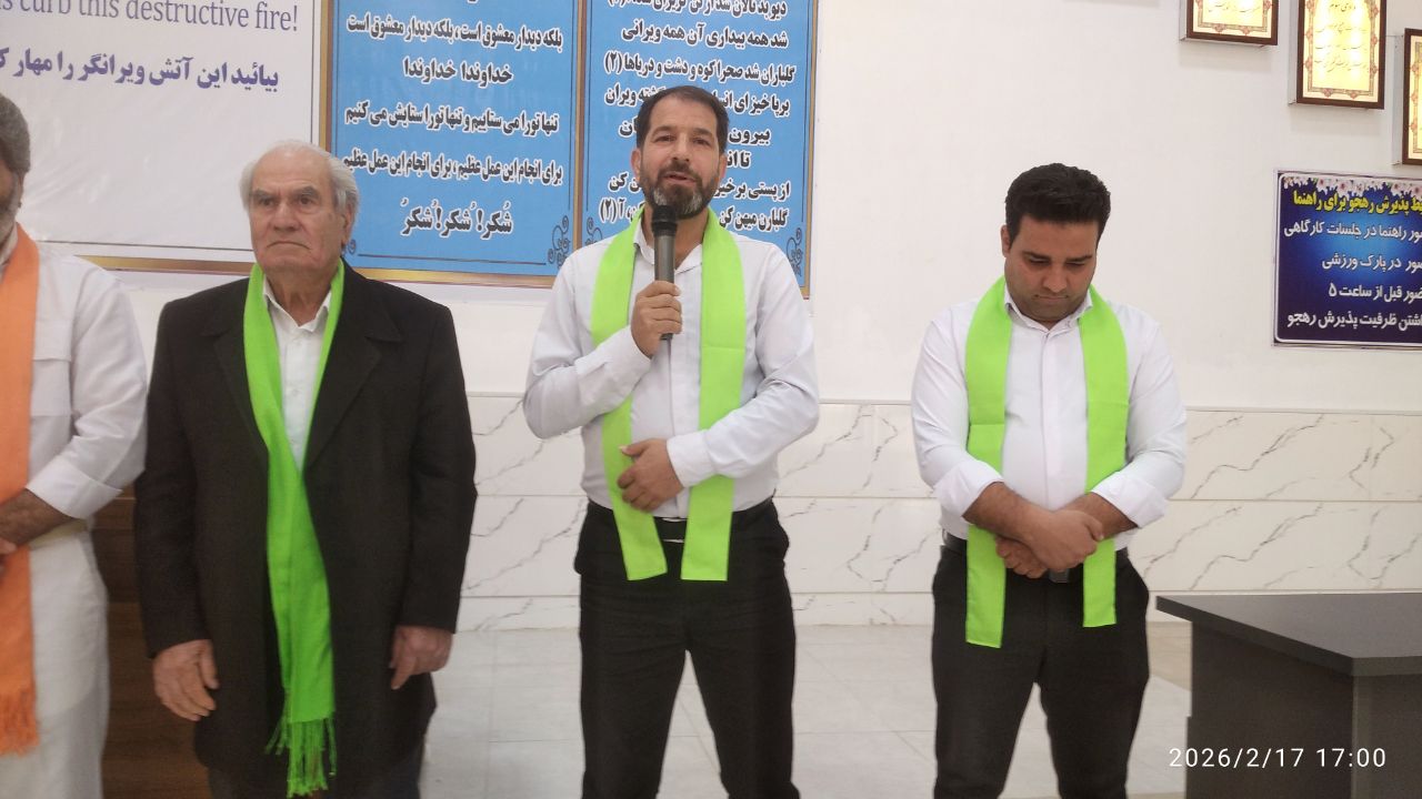 همانطور که دبیر عزیز فرمودند، اولین جشن راهنما هست در نمایندگی سالار. از این بابت خدا را شکر میکنم. یک دستی به افتخار همه راهنما ها مسافر و همسفر شعبه سالار بزنید. من تبریک میگویم این هفته را در رأس به اولین و بزرگترین راهنمای کنگره، آقای مهندس دژاکام ، خانواده محترم آقای مهندس استاد امین و همه راهنمایان سرتاسر کشور، چه مسافر و چه همسفر، تبریک میگویم به راهنماهای خودم: آقای تقی فرقدان، راهنمای جنز آقای رضا و راهنمای فعلی دیدهبان محترم آقای منصوری. امیدوارم که هر جا هستند، خیر و برکت آن ارزشی که آن راه را به من نشان دادند، به خانواده و سلامتی خدا به آنها بدهد.