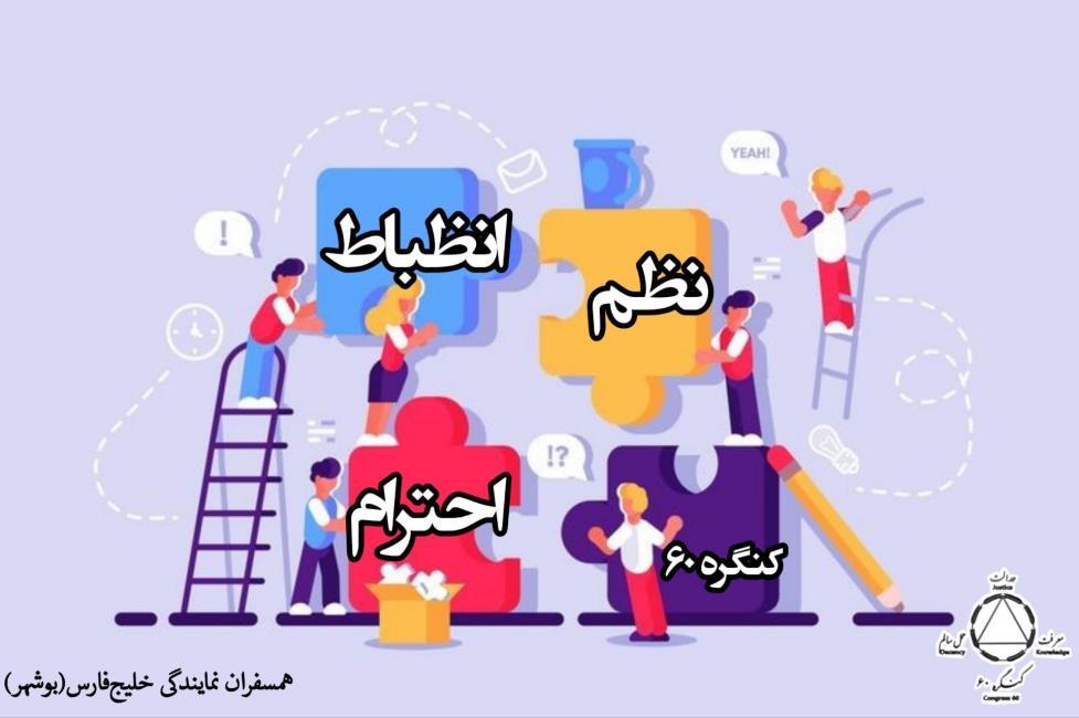 دستور جلسات هفتگي از انجماد تا شکوفایی در سایه نظم و انضباط 12 مهر راهنما همسفر مرضیه در مورد دستور جلسه نوشت: رعایت قوانین زیربنای استحکام کنگره است.